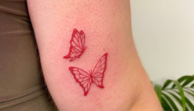 Red ink butterfly tattoo on @_annie.butler #tattoo#tattooideas#tattoos#artideas#…